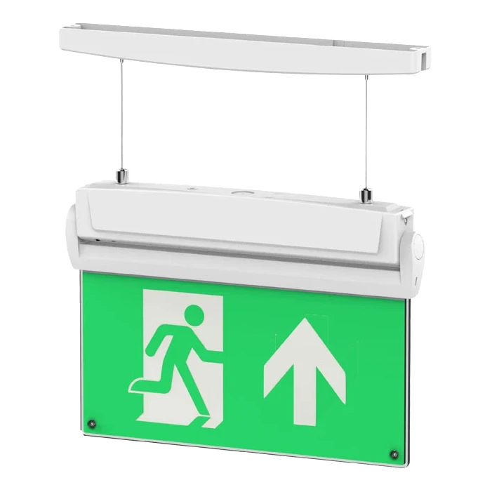 The Channel Safety Systems 5-in-1 Emergency Exit Sign is a versatile LED emergency exit sign designed to provide the correct mounting method for any installation scenario. This innovative exit sign eliminates the guesswork from emergency lighting projects by including five different mounting options as standard: wall, ceiling, flag, recessed, and suspended mounting configurations.
