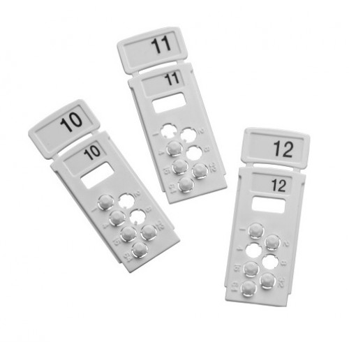 A universal address card supplied with all bases. Using a coding guide, pips are removed to set the address of the inserted detector.