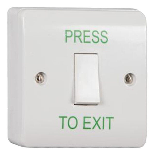 The CQR White Plastic “PRESS TO EXIT” Exit Button is a momentary operation switch made of high impact plastic, suitable for surface or flush fitting, with a printed legend, and changeover contacts for internal use only. It features a 10 AMP contact output at 240V AC/DC, easy clean surface, and dimensions of H85 x W85 x D28mm.