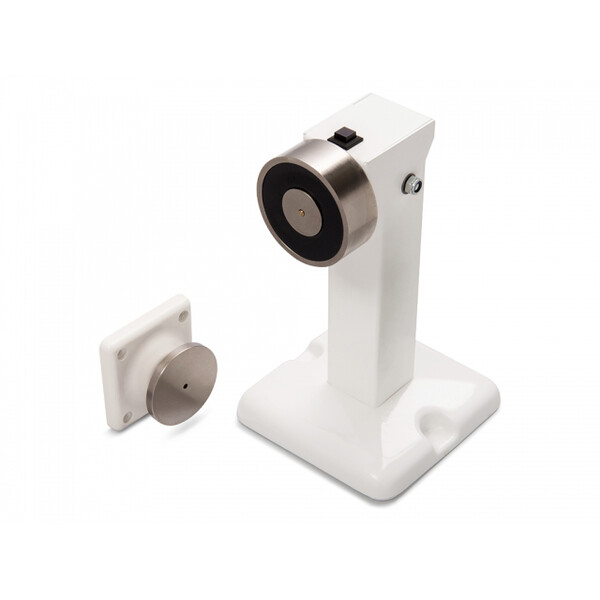 The magnet is fixed within an adjustable head which allows the door retainer to transform between floor, wall or ceiling mounted. The stand and adjustable head are fabricated from steel providing a very robust structure.