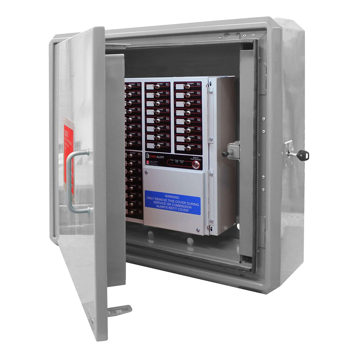 The ‘EVAC-ALERT’ Evacuation Alert Panel is designed to meet the rigorous standards of BS 8629, making it an ideal choice for high-rise residential buildings. This panel is specifically engineered for use by firefighters to facilitate the evacuation of all or part of a building during emergencies. It is housed in a robust, vandal-resistant cabinet that complies with STS 205 and EN 1303 standards, ensuring durability and reliability.