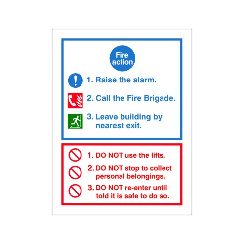 This Fire Action Sign offers clear indication of the actions to take in the event of a fire and is available in rigid plastic or self adhesive.