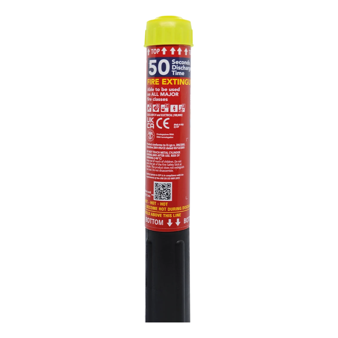 The Fire Safety Stick FSS50 is a revolutionary fire extinguisher that provides fast, effective, and clean fire suppression in a compact, lightweight form. Unlike traditional fire extinguishers that rely on pressurised canisters, the FSS50 uses a unique solid compound that produces a powerful aerosol when activated, interrupting the chemical reaction of fire to extinguish flames quickly and efficiently.