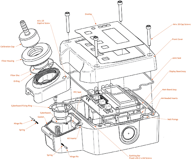 The detectors can also be locally recalibrated, with menu options to set the zero level, and options to set the calibration span, with the use of a calibration gas cylinder filled with the full scale gas concentration level.
