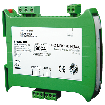 Model CHQ-MRC2(SCI) is a Single Input/Output Module, which provides a single, mains-rated relay output for the control of such devices as dampers, extractors or plant and equipment shutdown. The monitored input can be used for local power supply fault monitoring or as a general-purpose input. The unit is also available as a DIN Rail mountable version; with an integral short-circuit isolator. The CHQ-MRC2(SCI) utilises simple DIL switches for reliable addressing.