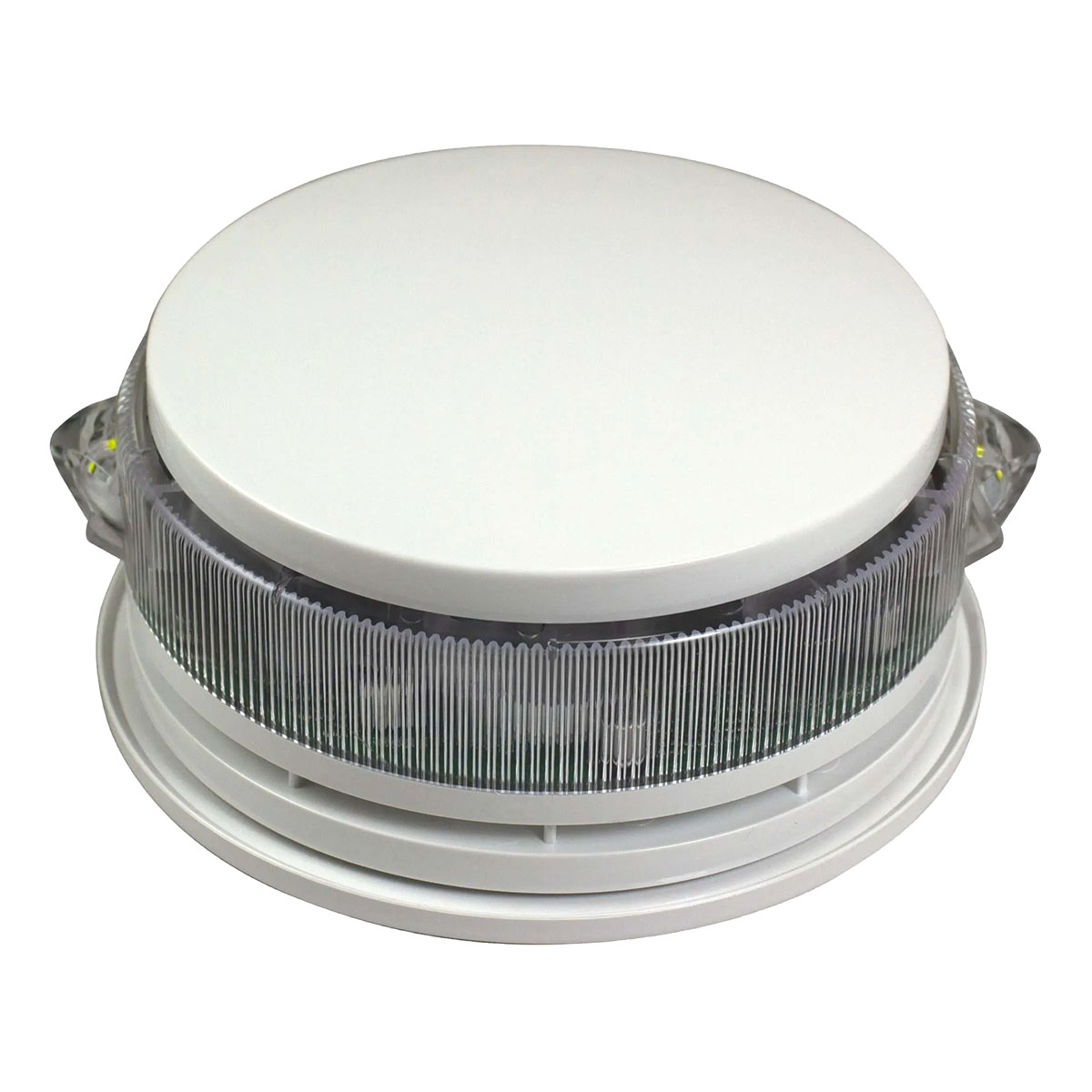 With an IP21C rating, the Hush-Pro Base Voice Sounder & VAD is ideal for indoor use, providing protection against vertically falling water drops. The product includes a white ceiling fixing plate and detector spur wires, facilitating easy and efficient installation.