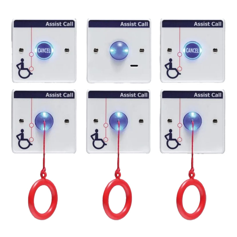 The kit includes all components required for a typical accessible bedroom application as recommended within Building Regulations Document M (Access for the Disabled) and BS 8300-2:2018. The system features pull cords and cancel plates strategically positioned by the bed, shower and toilet areas, along with an over-door indicator for corridor visibility. The ViAC-ACB-W is compatible with Lexicomm LX228, Lexicomm Network and AssistCall standalone range of controllers, providing flexible integration options for centralized emergency monitoring.