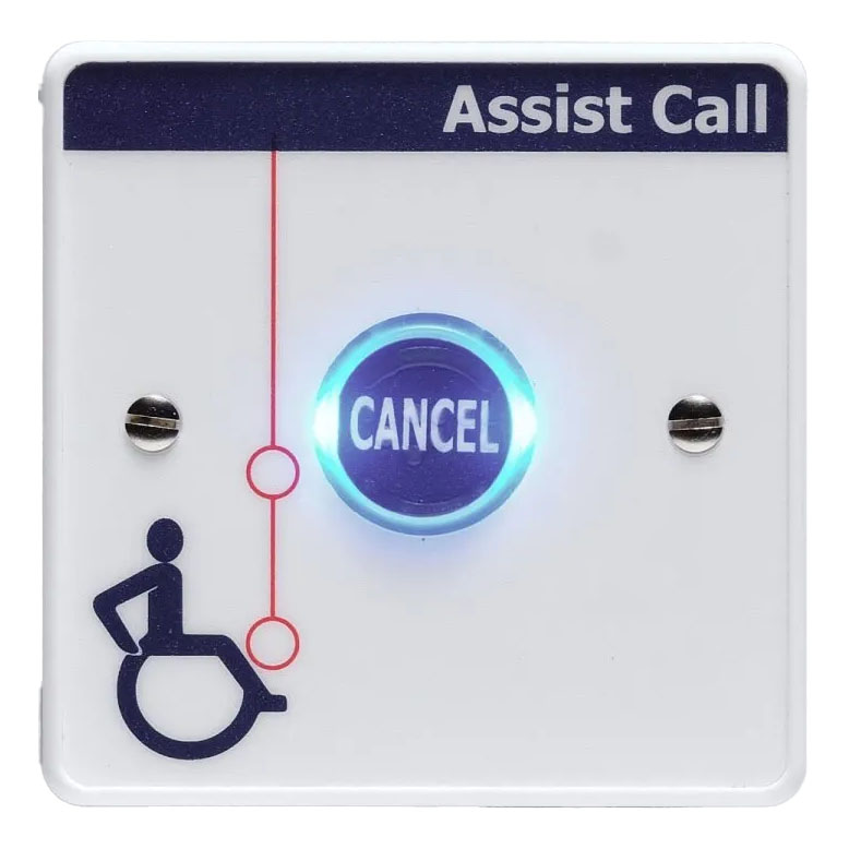 When an assistance alarm is activated or acknowledged, pressing the button on the cancel plate will cancel the alarm. This provides clear confirmation that the emergency has been resolved and help is no longer required.