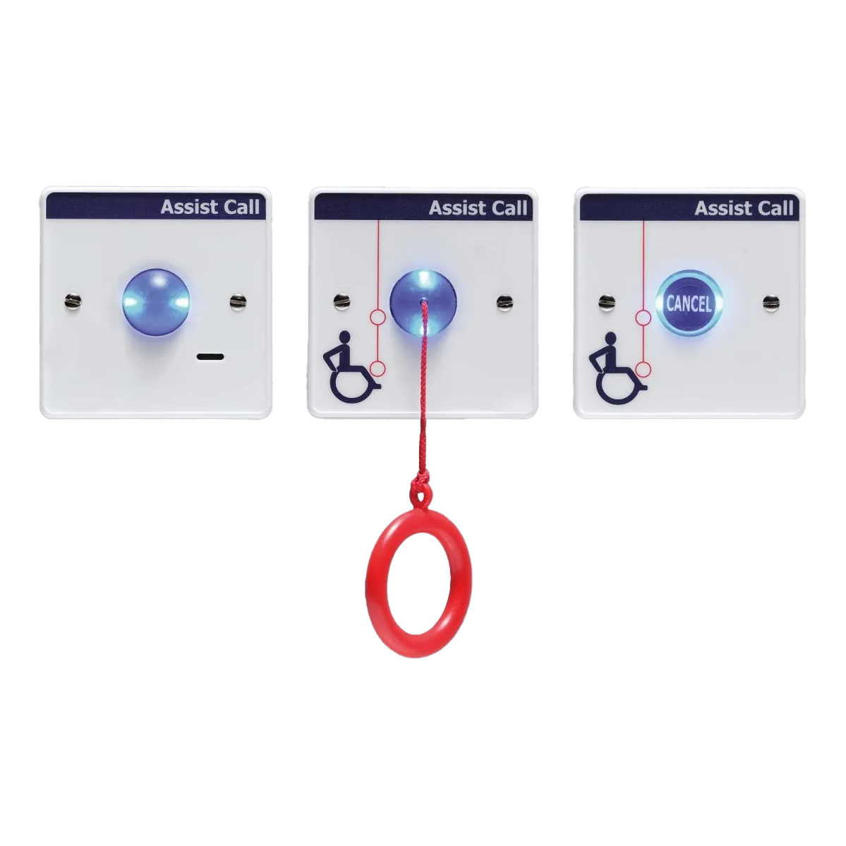 The ViAC-ACA-W kit provides a BS8300 compliant accessible toilet solution including the “Acknowledge” signalling required for remote locations. It can be used on a dedicated line, or may share a line with the ViLX-OSB disabled refuge outstation where operation of the refuge point overrides the assistance call, making it ideal where a disabled toilet is adjacent to a refuge lobby.