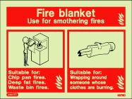 Photoluminescent ID sign for fire blankets which is available in 3 sizes and finished on rigid PVC plastic.