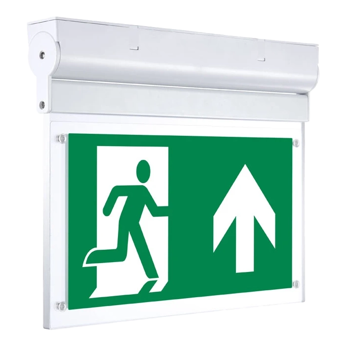 - Stylish ultra slim-line and compact range of LED exit signs complete with arrow up pictograms