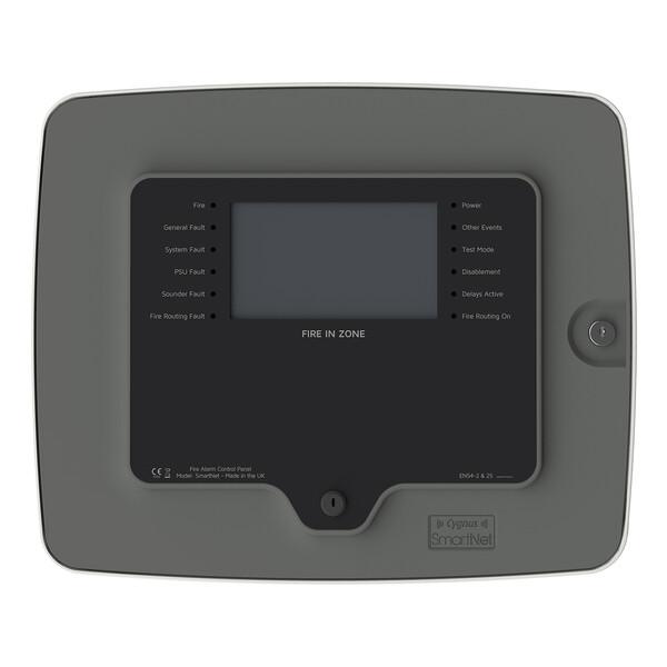 The Cygnus SmartNet-100 S1.CIE10.A is a wireless fire control panel designed to manage up to 100 SmartNet devices, making it ideal for medium-sized sites. This control panel is part of the Cygnus SmartNet wireless fire detection and alarm system, which includes a range of battery-powered, wireless fire detection and alarm products suitable for permanent installations, commercial premises, and HMOs. Featuring a 7” full-colour touchscreen display, the panel offers intuitive operation and configuration, with a resistive touchscreen suitable for use with gloves. The SmartNet-100 is designed for easy installation with options for recessed or surface mounting and includes a key-lockable door for security.