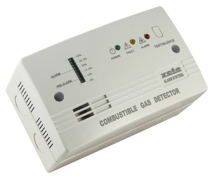 The ZG-100 is the new stand alone Combustible Gas Detector from Zeta Alarm Systems. It has been designed with the same dimensions as a standard 2 gang fitting, so can be installed either surface mounted with it’s own backbox, or with a standard recessed box for semi-flush mounting.