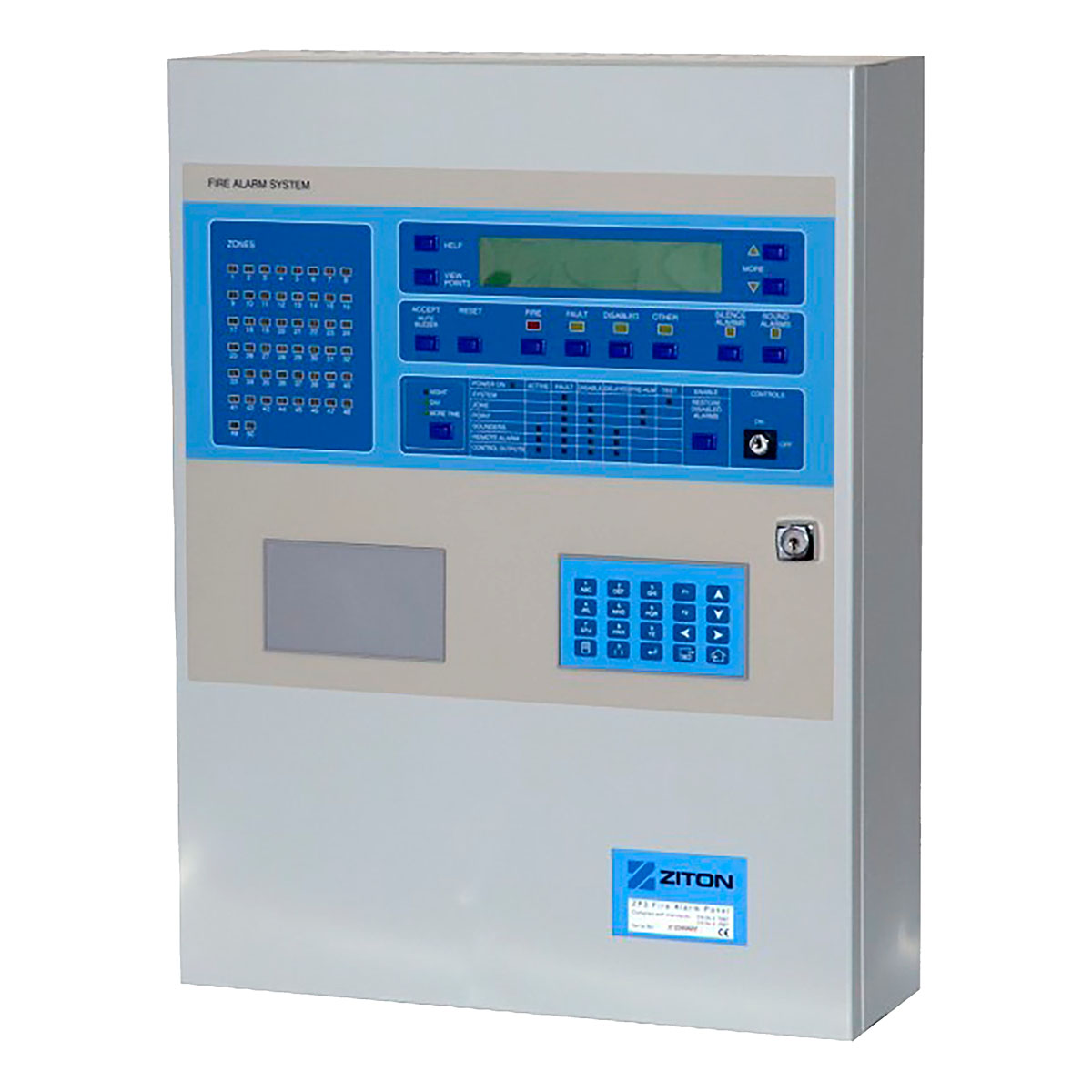The Ziton 71401N ZP3 Series, ZP3-2L, is a 2-loop analogue control panel designed to recognize real fires sooner while minimizing false alarms. It features advanced panel design and high sensitivity smoke and fire sensing. Available in 2 and 4 loop configurations, it accommodates up to 508 sensing addresses. For larger sites, panels can be networked to control over 30,000 devices from up to 64 control panels.