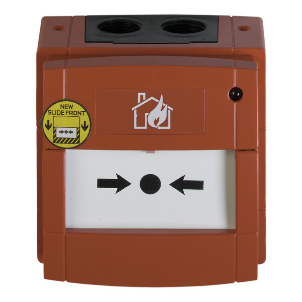 The unit is operated either by pressing a resettable element (EN54 Part 11) or by breaking a frangible glass with finger pressure. Glass elements have clear vinyl coatings on the front surface to prevent operator injury and to inhibit the release of loose fragments as the glass is broken. Both operating elements are easily interchangeable.