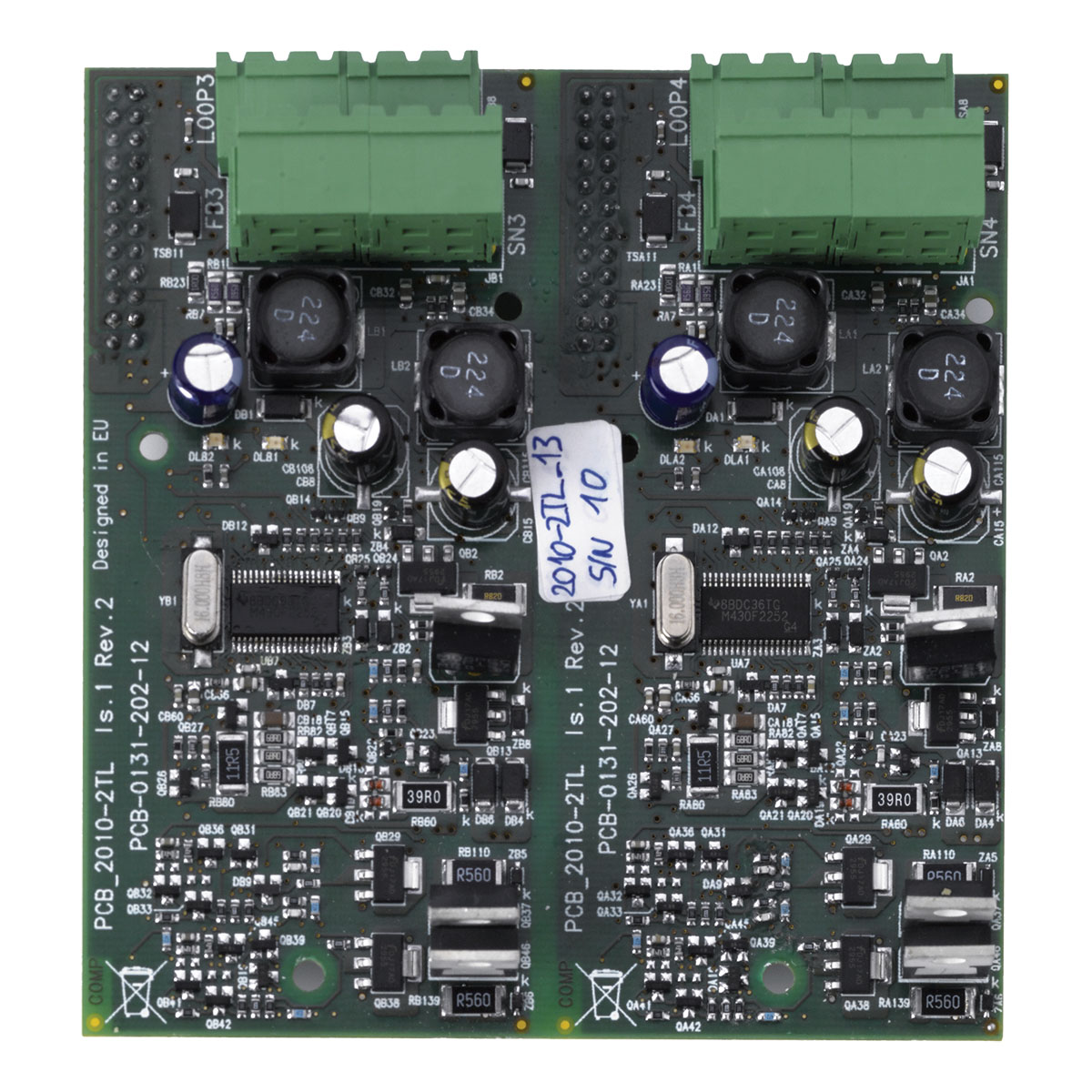 The loop board with pluggable connectors adds 2 additional loops to your 2-loop low-end addressable fire panel, effectively doubling the number of devices supported by one panel and allowing for 128 extra zones to be programmed. Along with the 2 additional loops, it provides 4 supervised sounder/fire-routing outputs, which can be used as freely programmable outputs.